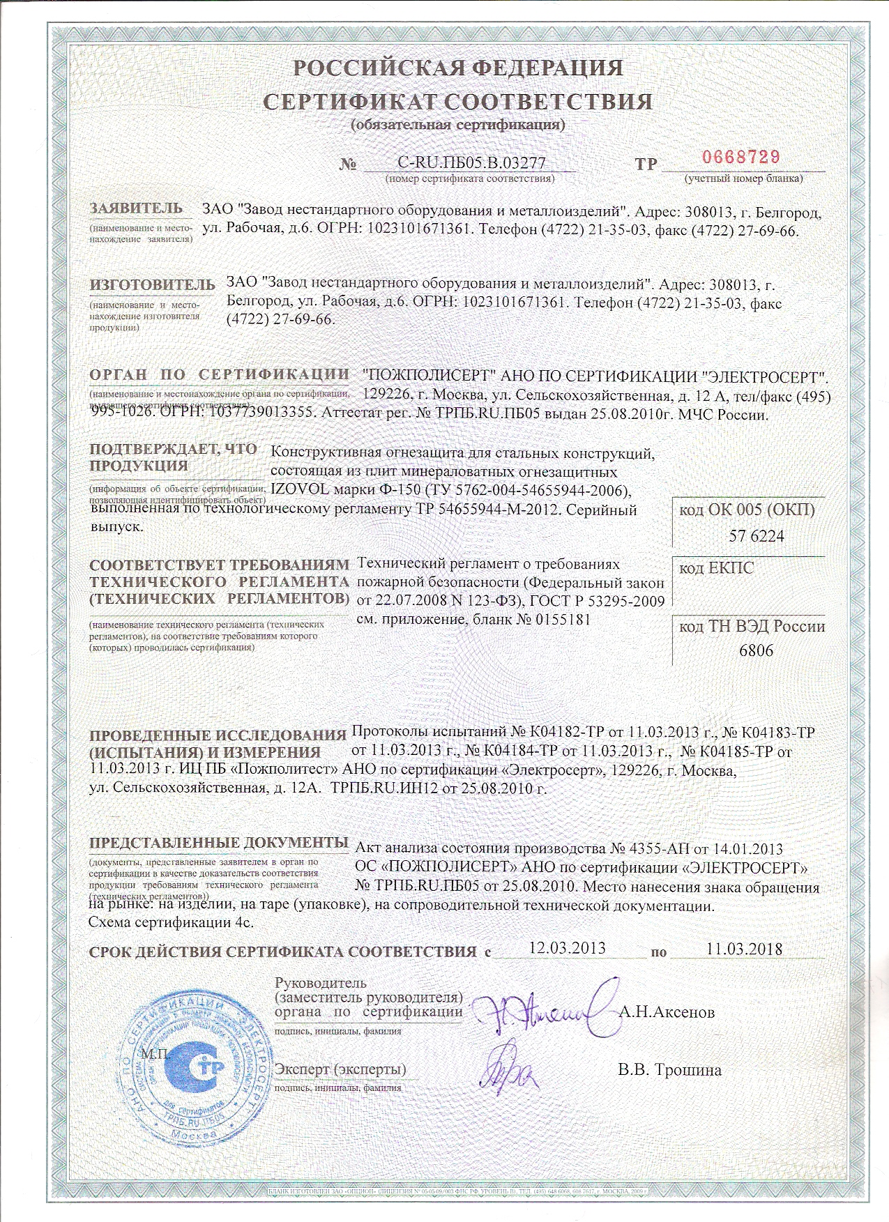 Сертификаты продукции Кнауф